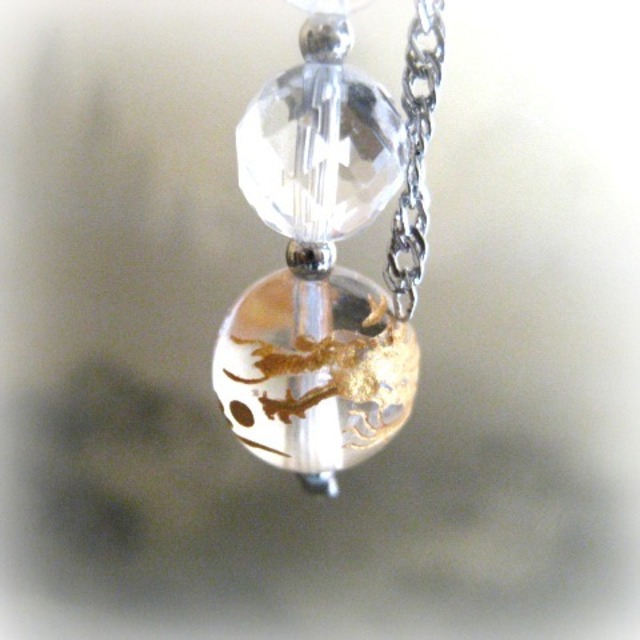 青龍【心の昇り龍ストラップ&チャーム】金の窓 クラック水晶