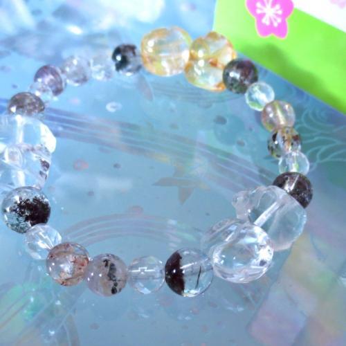 さらに、シャーマンクリスタルとも呼ばれ、グラウディングや財運の御守りとしても人気のガーデンクォーツらが一体となり、開運全開を招いてくれるでしょう。