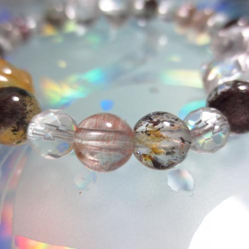 水晶・アメジスト・ルチルクォーツ・スモーキークォーツ・レピドクロサイト・ゲーサイト・カコクセナイトなど7つの鉱物が内包され、相乗効果により大いなるエネルギーをもたらす非常に希少な石。持つ人を選ばず、小宇宙や最も輝くシリウスの石としても伝えられる。