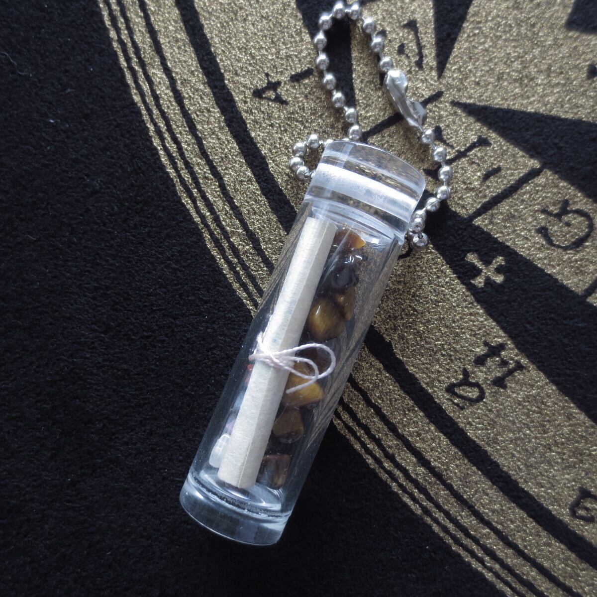 New! 金運・財運・魔除け【魔法のカプセル(タイガーアイ)3つの星と1つの月】「劉進平の霊符入り」