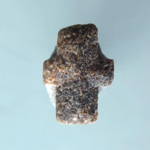 双晶によって結成された立体の十字架を持つ鉱物。